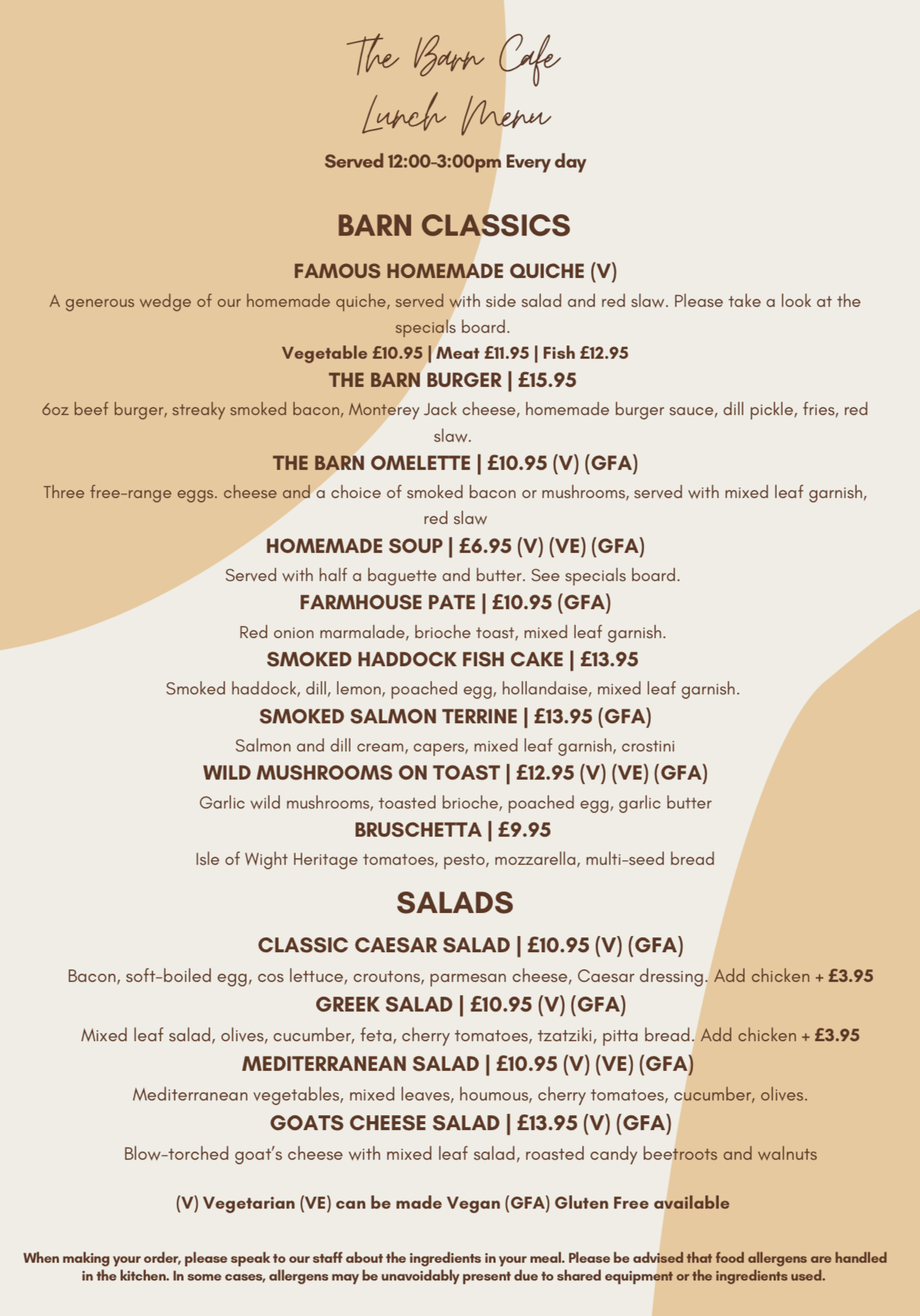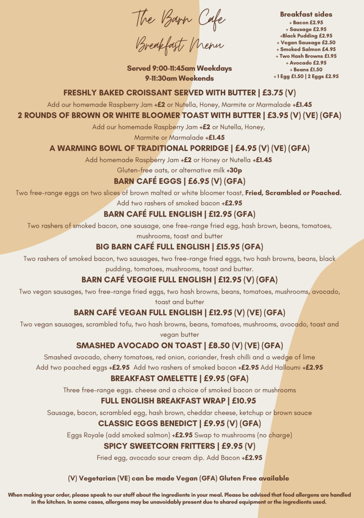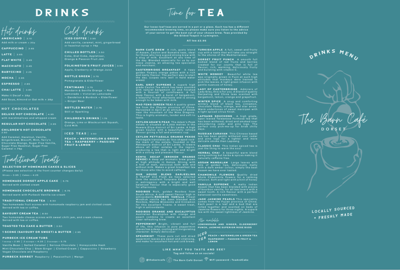 Whether you're in the mood for a hearty Barn Full English, a light lunch, homemade quiche, or a traditional afternoon tea, our menu is packed with freshly cooked dishes made to order. We also offer an extensive Gluten Free menu and are happy to cater for other dietary requirements.